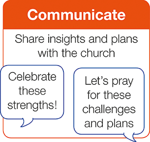 • Celebrate strengths and communicate insights with the church