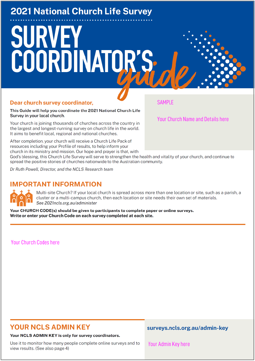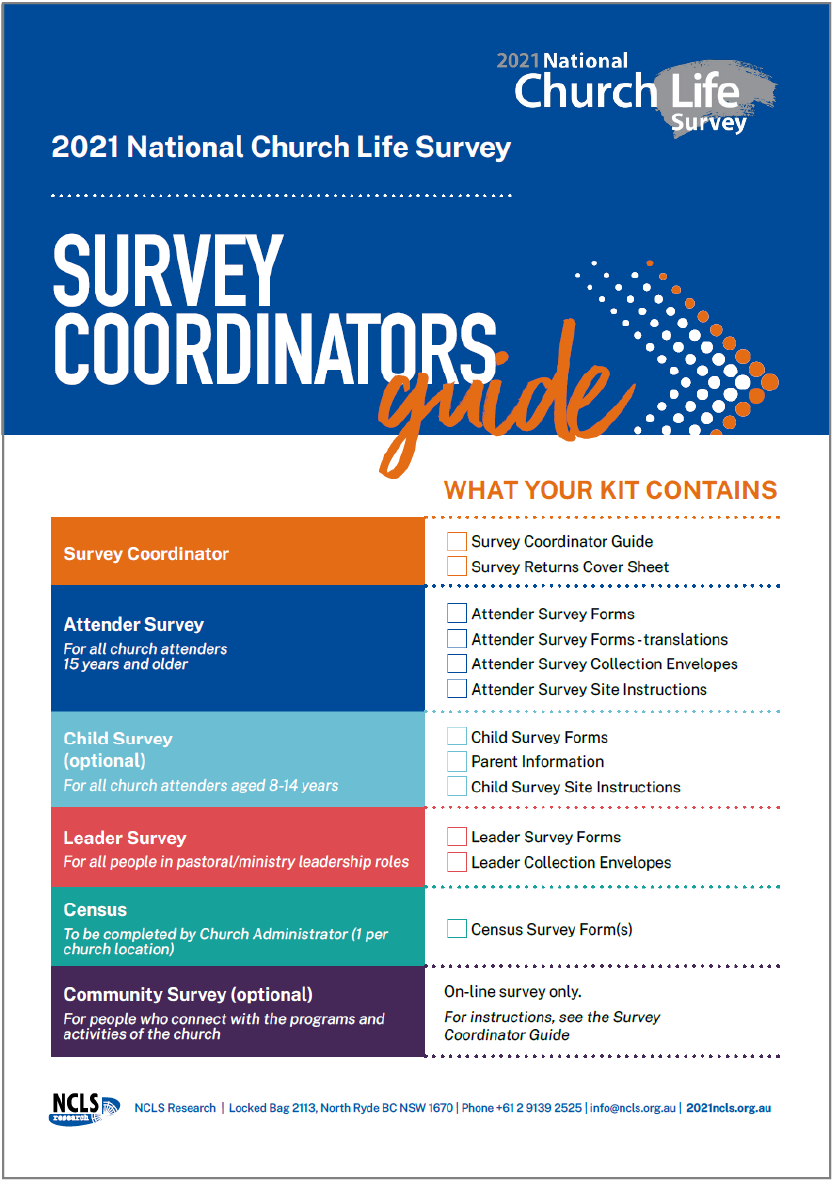 For the person coordinating the survey in your church or parish, to help organise completion of all surveys.