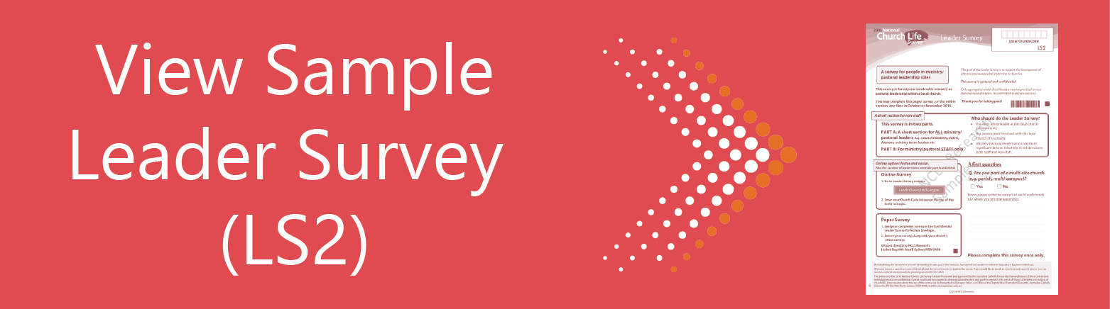 The Leader Survey is for completion by church leaders: ordained, lay, paid and volunteer, e.g. minister, pastor, priest, ministry team leader, elder or pastoral associate.